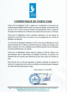- Attaque Jihadiste à Kpinkankandji / Communiqué du Parti UNIR