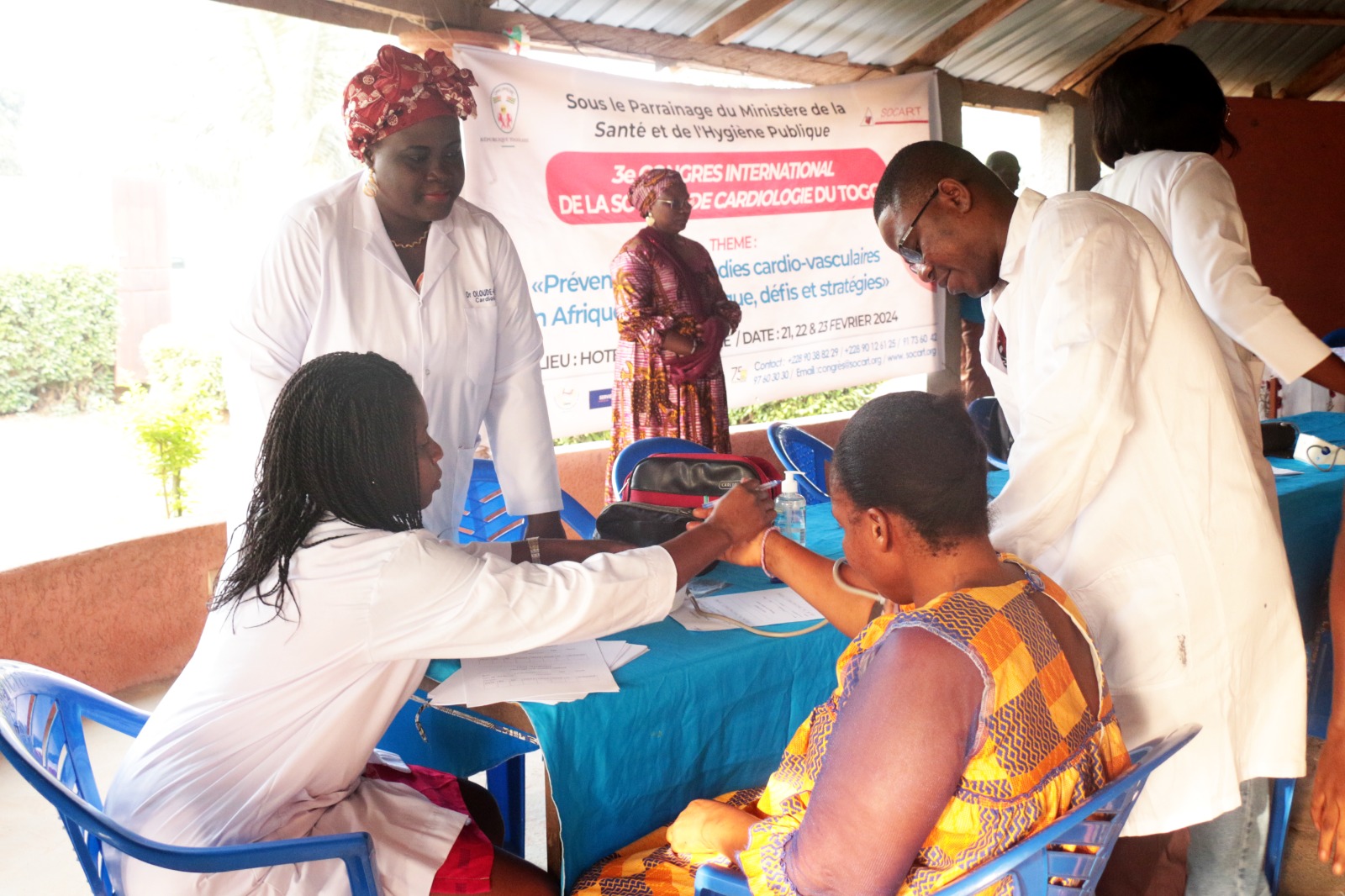 En prélude au troisième congrès international de la société de cardiologie du Togo (SOCART) qui se tient du 21 au 23 février prochain, une campagne de sensibilisation et de prévention a eu lieu ce vendredi 16 février à Sanguéra au profit des femmes de cette commune. Etaient présents aux côtés des médecins cardiologues, l’honorable Kouméalo ANATE, l’adjoint au maire et le secrétaire général de la commune de Sanguéra.