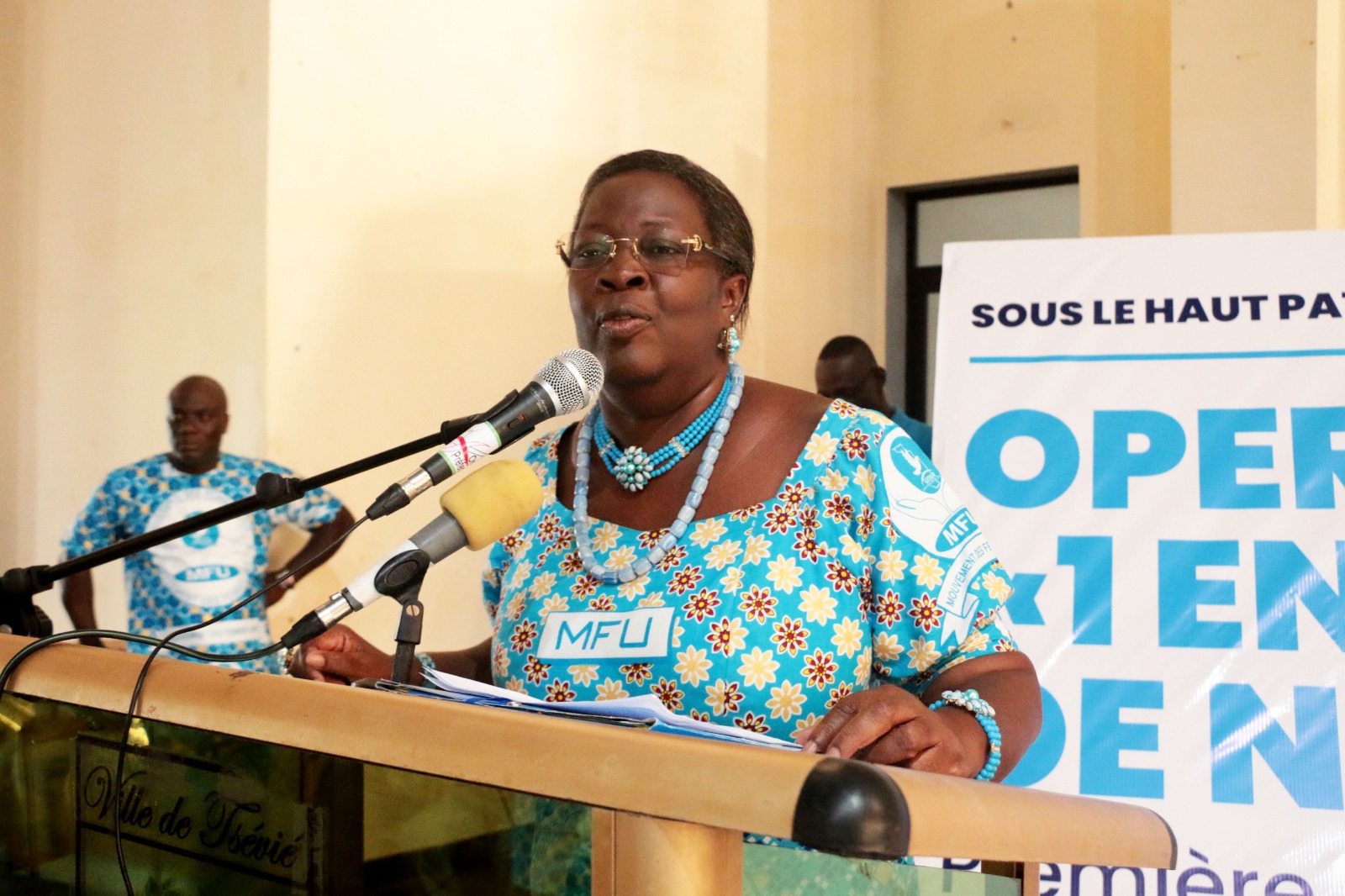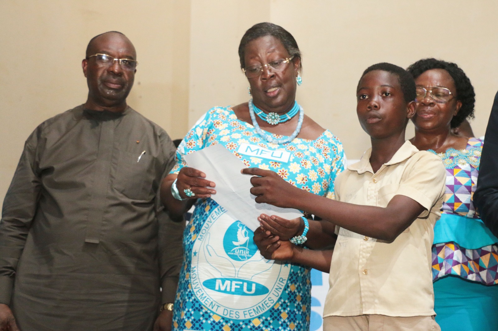 << Le Président de notre grand parti Unir, le Distingué militant Faure Essozimna Gnassingbé nous a fait l’insigne honneur de porter ce vaste projet. Aussi visionnaire qu’il soit, il a décrété la gratuité des actes de naissance depuis l’année passée et aujourd’hui il a compris que malgré celà certains parents pour certaines raisons sont toujours dans l’ignorance. Il nous a envoyés pour rectifier le tir et permettre aux élèves de pouvoir se présenter aux différents examens >>, a déclaré la militante Raymonde Kayi Lawson, Déléguée nationale du MFU.
